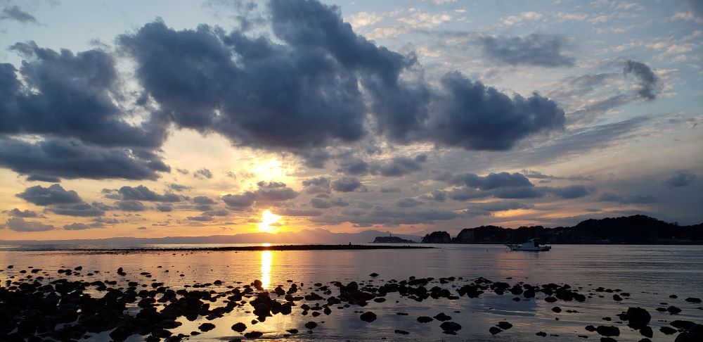 この日は午前中から一つの源流(龍)から枝分かれしてたくさんの龍になる様子の雲がわんさかあってかなりにぎやかでした。江島神社と対になる龍口明神社の龍神祭の前日だったのでよく覚えています)