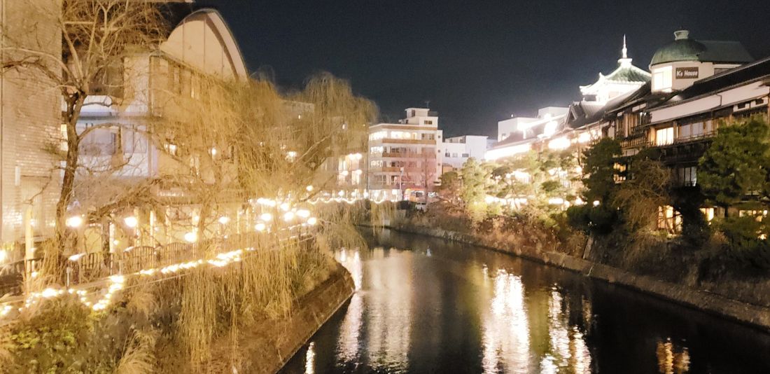 川沿いは竹あかりでライトアップされてます