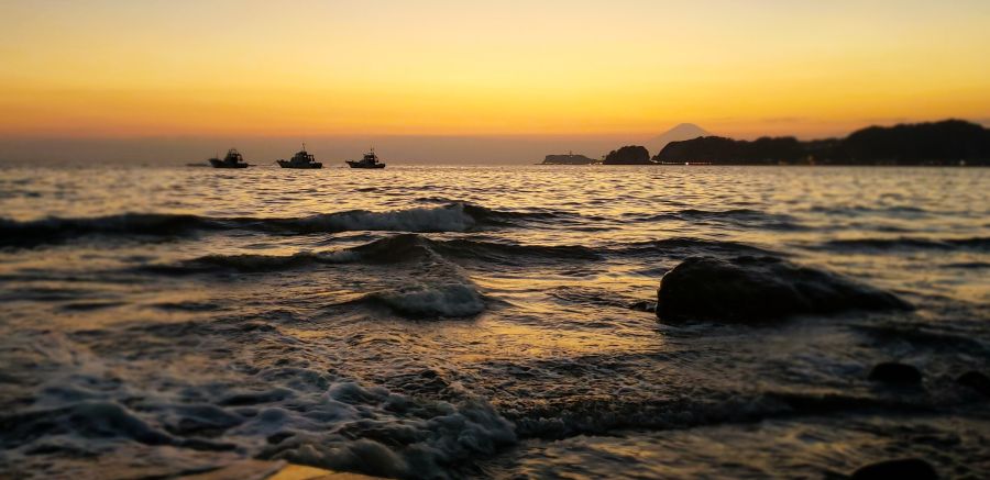江ノ島と稲村ケ崎のライン上にあります。