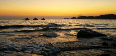稲村ケ崎の端から江ノ島の左側が見えています。