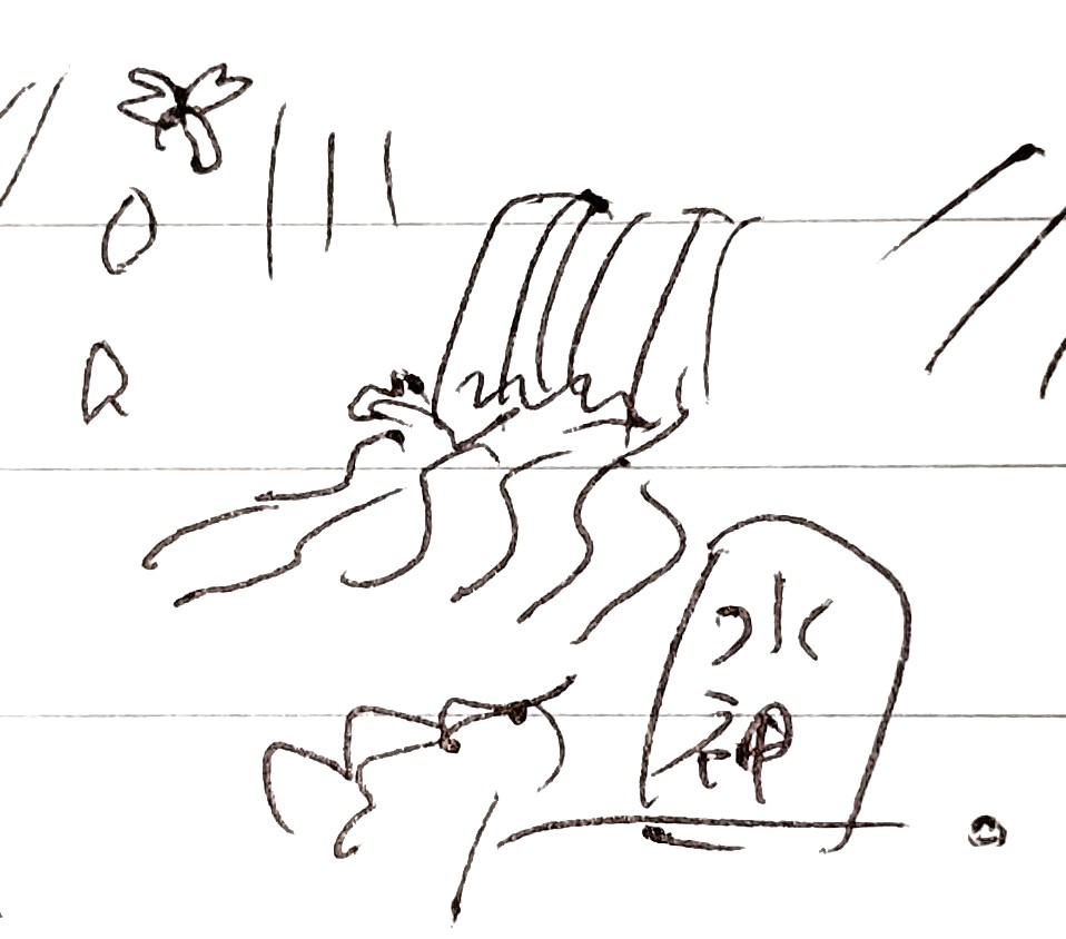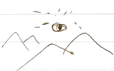 二枚目は、鎌田山の山頂の絵。目玉があるのはたぶんハロが出てたから。なんかご先祖様に見られてる気分になってた記憶
