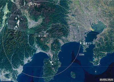 富士山から半径75kmの円は、富士山の結界