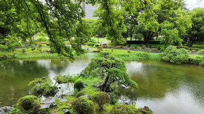 日比谷見附跡から心字池を通してワニの撃たれた場所