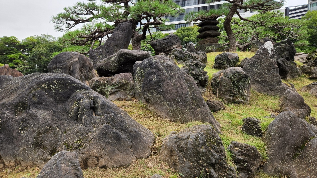 隣の浜離宮恩賜庭園にくらべてコンパクトな庭園