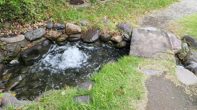 昔は池が海に繋がっていて海水を使っていたけど今は周囲の開発が進み海に繋がっていないこと。今は淡水↑。
