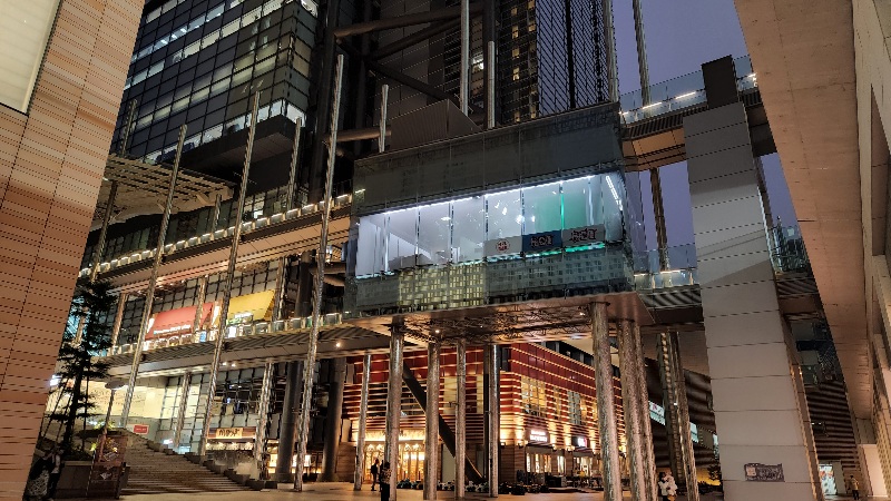 浜松町駅の目の前なので高層ビルに囲まれていること。